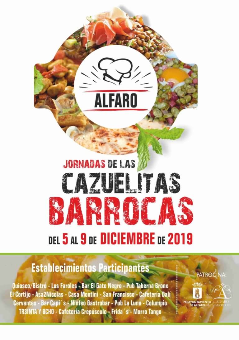 Del 5 al 9 de diciembre, coincidiendo con el puente de la Constitución y la Inmaculada, se va a celebrar en Alfaro una nueva edición de las Jornadas de las Cazuelitas Barrocas que organiza el Ayuntamiento junto con dieciocho establecimientos hosteleros de la ciudad.