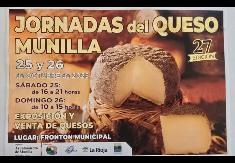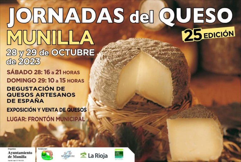 La localidad de Munilla va a celebrar este próximo sábado 25 y domingo 26 de octubre la vigesimoséptima edición de sus Jornadas del Queso Artesano, con el objetivo de seguir difundiendo, a través de este producto, los recursos naturales y culturales de este enclave del alto Cidacos. Un total de 19 queserías de distintas denominaciones de origen de todo el territorio nacional van a participar en estas jornadas que se celebrarán en el frontón municipal cubierto de la localidad, el sábado de 16 a 21 horas y el domingo de 10 a 15 horas.